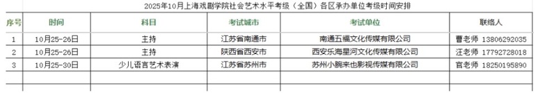 2025 年 10 ⽉上海戏剧学院社会艺术⽔平考级考试